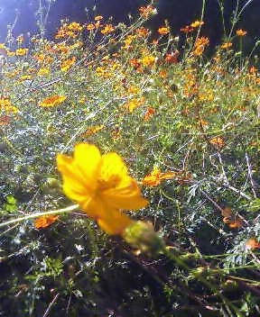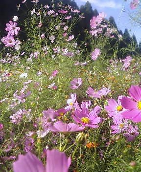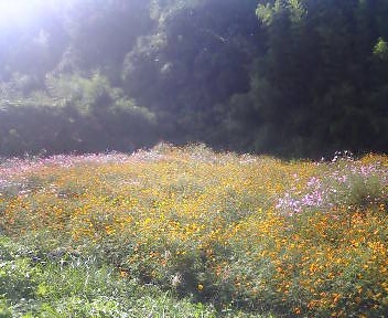 山登りをしてきた。八幡岳とよばれる標高700メートルぐらいの山で、頂上にNHK FMの電波塔が立っているため、頂上にまで車道が通っていた。そんなに高い山では無いけれど、平野で有名なわが県にしては珍しい棚田の名所100選に選ばれているらしいところで、驚いたのはこの土地の棚田は他県の棚田と違い、石垣で持って支えられていた。思わず激写する。 上から撮影したため、石垣があるのかないのかさっぱりわからないという微妙なショットの撮影に成功した。 午後から出発したこともあって、さすがに歩きはしなかったんだけど、山を見ているとそこらに山芋の蔦が伸びていたり、雑木林があったりして、キノコなんかがわんさかありそうな予感満載。いやいや出発した割りに楽しくなってきた。アケビの蔦もあったけど、あんまり豊かな土壌ではないみたいで、山芋もアケビも実はあまり期待できそうにないのが残念。 で、この山、かなり下界の町から離れているので生活するのは難しそうなんだけど、人家がちらほらあったりした。思ってたとおりものすごく寂れていて、このアタリだけ外国みたいだった。若者は皆出て行ったんだなぁとしみじみする。俺の田舎みたい。そんなことを考えながらふらふらしていたら、いよいよ人里から離れてしまい、ここどこだよという事態に相成った。スゲー静か。日本にこんな静寂がまだあったのかと思うと同時に、トワイライトとでも言いましょうか、夕暮れも差し掛かり始めなんか怖くなってきた。「父上、もと来た道を戻りましょうよ。戻りましょうよ」とハンドル握る父上に孔子ばりのすぐれた助言をあたえてみはするものの、わが殿はおよそ車が通ってはいけないような道をみつけては、うれしそうにつっこんでいき、55歳のくせに「イエイイエイ!」と叫んでいる。山生まれ山育ちの男は木とか葉っぱとか、ちゃんと整備されて無い未知なる道を見つけると、子供みたいに興奮してしまうのだ。もうこうなると誰も止められないので、仕方が無いから一緒にイエイイエイ!した。イエイイエイ! 迷ったなこりゃ。完全迷った。それも上機嫌で。ニカニカしている父上を見つつ俺一人が途方にくれていると、急に目の前が開けた。 バラバラバラーと無計画に花の種をまいたら、いつのまにやらこんなんなっちゃった、みたいな花畑。きれいだけど、誰も見る人おらんのだなと思うと、妙な気持ちになって、普段花とかはあんまり目に留めないけど、なんとなく写真撮って来た。ところで迷った迷ったと思ってましたが、ちょっと降りるとすぐにもときた道に戻れた。思わず二人で「ワァオ」。反応がいやみになるほど、つくづくと外人。こういう地の反応は誤魔化しきかないわけですな。以上、「二人は名コンビ!ブラッドピット&クリントイーストウッド〜ワンダフルカントリージャパンのマウンテンに翻弄されるの巻」おしま〜い。 |