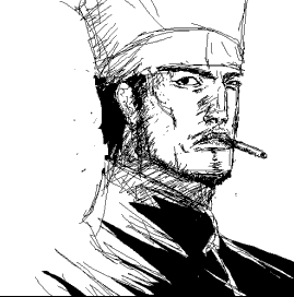 煙草は吸わないのに、ほのかに煙草のflavorがする、苦くて切ない村長です。今はまだ悲しいlove song 新しい歌うたえるまで。 宇多田ヒカルをリスペクトしている場合ではないほどに、俺の体全身から煙草の臭気がたちのぼっている。改めてヘビースモーカーがいるということを意識せざるをえない。父上め、暇さえあればもくもく煙吐きやがって、お前は機関車トーマスか。トーマスは煙もくもくさせることによって人を遠くまで運ぶことができるが、父上はいくら煙を吐いても俺に臭いがしみつくだけでなんの利益も無い。むしろデメリットばかりであります。…ただ、この煙をまといながらウロチョロしていると前の自分とはまったく違う自分にあえたような気がしないでもない。なんだかクリーンなイメージオンリーだった俺に、スパイスが入ったというか、渋みが増したというか…。前まではどことなく気品の漂う近寄りがたい天上人的なイメージだった俺だけれども、ちょいと煙草の匂いがするだけでいっきにワイルドになったというか、手に届く人になったというかね。 とにかく周囲から思わず頼りたくなるタフガイに見られているような気がしてならないよ。どうしようかなー道行く人から急に「お願いあたしをかくまって!」なんていわれちゃうんじゃないかなぁ。「命を狙われているの…助けて!」なんてね。「お礼はちゃんとするから!スイスの銀行口座にパパがくれたお小遣いが貯まってるはず…一度も使ったこと無いもの。パパはあたしのことおもちゃか何かと同じに思ってるんだわ、お金さえ与えておけばいい子でいると思ったら大間違いよ!あたしはパパが大嫌い。あっ、ゴメンね、初対面なのにこんな話して、変だよね…とにかく、お願い、一緒に逃げて!あなたしかもう頼れる人がいないの!」とかいってね。あー困るー。煙草の臭いがするばっかりに、面倒なことになっちまったぜ…とりあえず国外逃亡がすぐできるようにパスポートを持ち歩き、いざというときのためにBB弾の弾を買いだめしておこう。敵がきたら投げるのだ。撃たない。投げる。力いっぱいぶんなげる。敵がちらばったBB弾を本能おもむくままに拾い捲っている間に、俺たちはさっさと逃げ出しているという寸法さ。ここで注意しないといけないのは、俺たちまでBB弾を拾わないようにするということです。拾いたくなっちゃうもんなー、あの黄色い弾は。道に落ちてるのを見ると、何の役にも立たないことはわかっていてもウズウズするね! <船長指令・ツヴァイル海賊団全員を描け!> マッシモ。脱退したけど仲間。色塗りはそのうちやるかやらないかわかんないけど、終わった!海賊なので船長以外は笑っていません。マッシモはイメージどおりに描けました。またいつかあえたらいいなぁ、マッシモ。 |