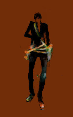 容姿→黒髪。若白毛で灰色に見える。黒目。面長で骨ばっている。肌は表に出ている分は日焼けしているが、脱ぐと色白。